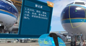 目前已有飛機維修VR實訓教學、多人協(xié)同寫作VR滅火訓練、繞機檢查課程、艙門開關全流程模擬等VR/AR內容。